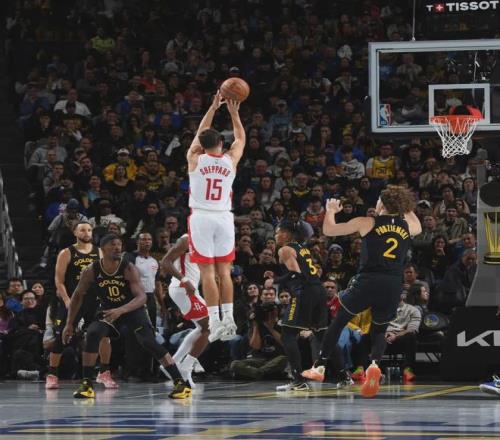 半场结束时,谢泼德拿到全场最高的15分,是全队唯一得分上双的球员,在他苦苦支撑之下火箭落后12分进入下半场。