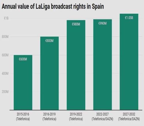 西甲全球体育版权费用预测