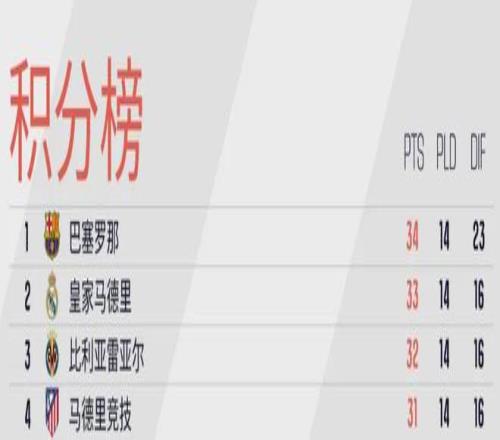 新赛季西甲联赛赛程已然完成三分之一,积分榜前四却形成等差数列,榜首巴萨只领先第四位马竞3分,呈现出24年来最胶着的争冠开局,追平2001-02赛季14轮过后积分榜前四的最小分差,也让巴萨马竞两队本周中的直接较量愈发引人关注。皇马巴萨双雄争霸的老套剧本改换成“驷马齐驱”的开场剧目,为西甲联赛增添几分新意和悬念。显然这样的局面也是西甲联盟主席特瓦斯所乐见的。