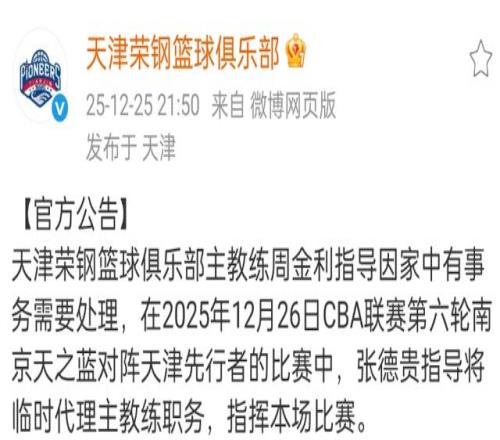 然而老牌球队天津男篮却成为了第四支更换主帅的球队,根据官方公告,主帅周金利因为家庭原因缺席一场比赛,张德贵走马上任成为球队代理主帅。天津男篮是目前唯一不胜的球队,这样的调整恐怕也是无奈之举。