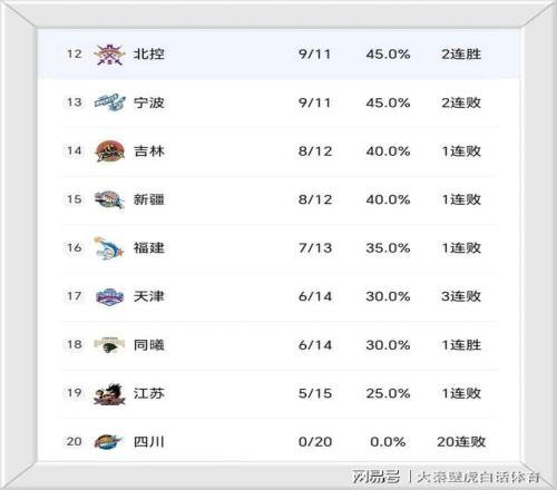 ③、辽宁上升2名来到第11位,四川依然一胜难求,赛季20连败继续垫底。
