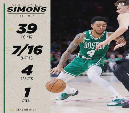 本赛季至今,西蒙斯出战49场比赛全部替补,场均上阵24.5分钟得到14.2分2.4板2.4助,场均以39.5%命中率扔进2.7记三分球,最佳第六人有力竞争者,可惜为合同年薪资2768万美元,成了被凯尔特人放弃的原因之一。